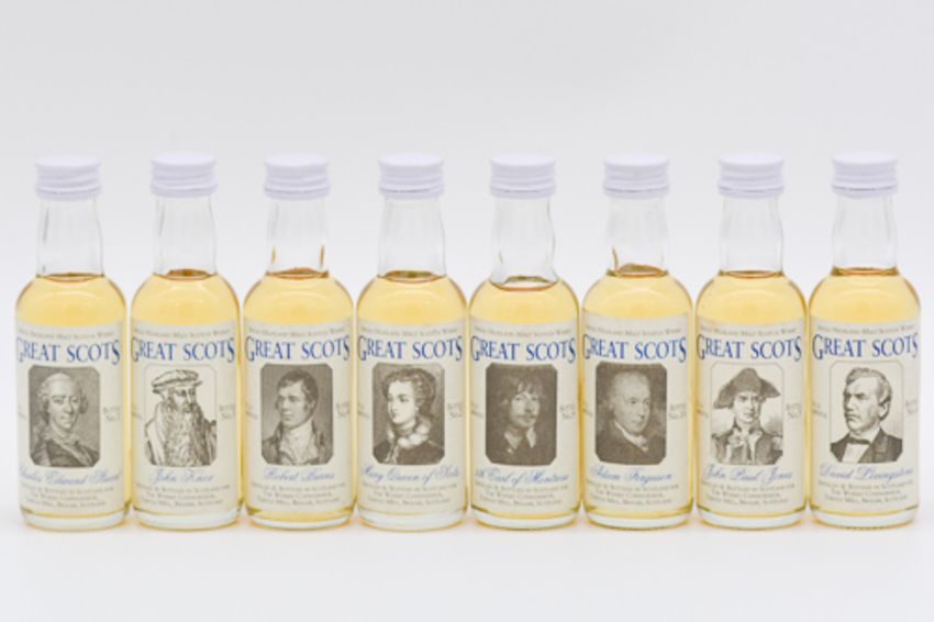 The Whisky Connoisseur - the complete Great Scots miniature series, 24 bottles, each 5cl, 40%.
