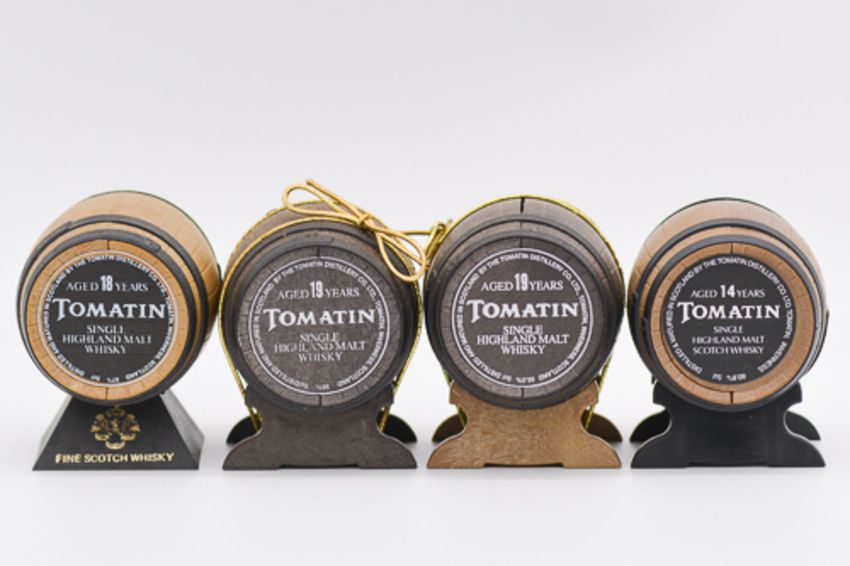 Collection of ten Tomatin Cask Strength whisky barrel miniatures, including: