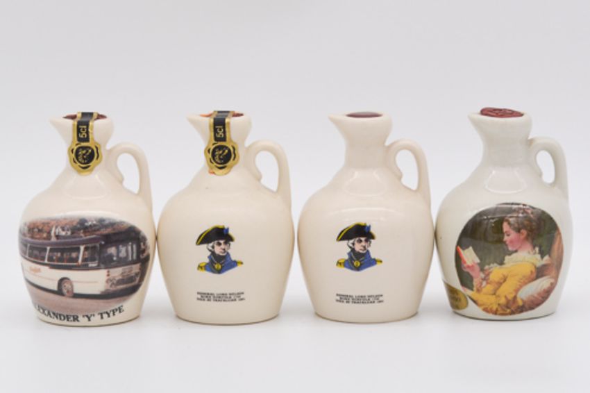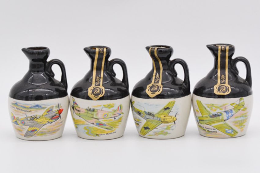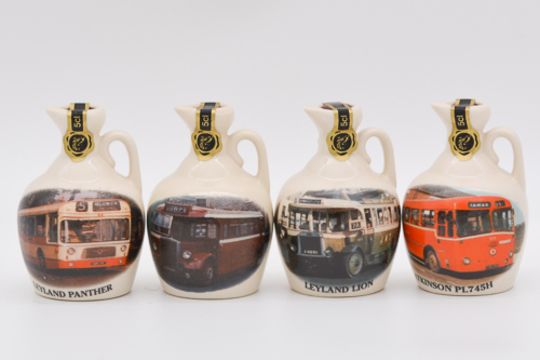 Twenty three assorted Rutherford's ceramic decanters, blended Scotch whisky, including WWII Aircraft series on stoneware decanters, Vintage bus series on all-white decanters, and other commemoratives, etc, each 5cl, 40%.