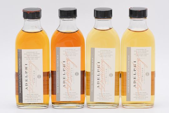 Adelphi Distillery Limited - a collection of seventeen whiskies - note all except one has lost the wax seal top: