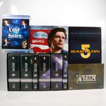 Large collection of DVD films, four boxes full, films and TV series, including The Hulk collection; Stargate SG1; Lost Girl; Babylon 5; A-Team; Star Trek and many others, some sealed.