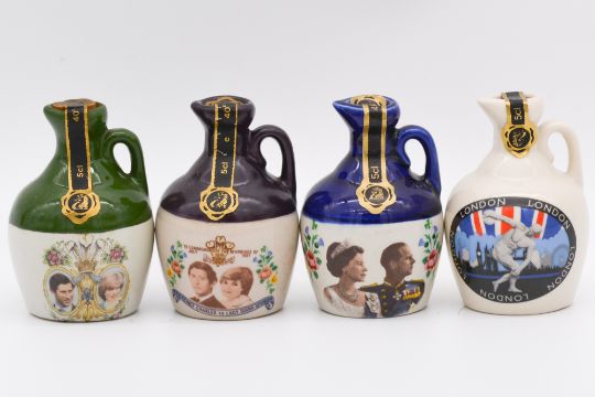 Twenty four assorted Rutherford's ceramic decanters, blended Scotch whisky, including Royal commemoratives, English landmarks, etc each 5cl, 40%.