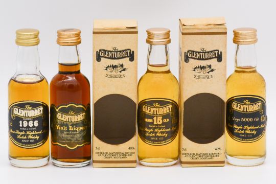 Glenturret, seven whisky miniature bottlings, early 1990s bottlings: