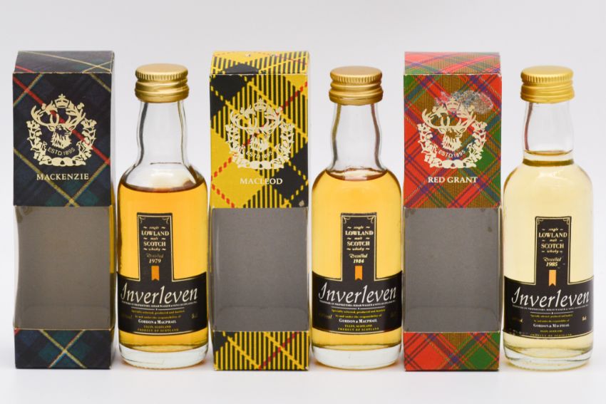 Gordon & MacPhail, Inverleven, six single Lowland malt Scotch miniature whiskies: