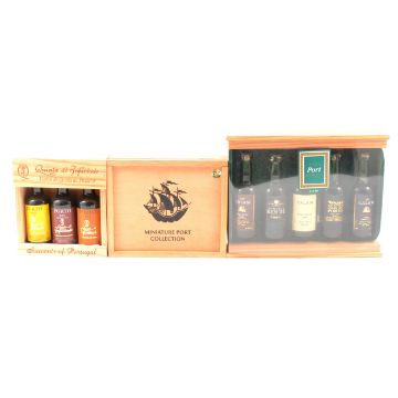 Assorted port sample bottle gift sets mostly St Michael labels, a five-bottle set from Adriano Ramos-Pinto, one set from Quinta do Infantado, etc.