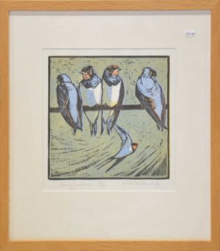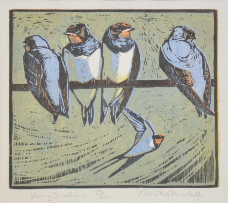 Robert Greenhalf, Young Swallows, linocut, 53/100, 214x27.5cm;