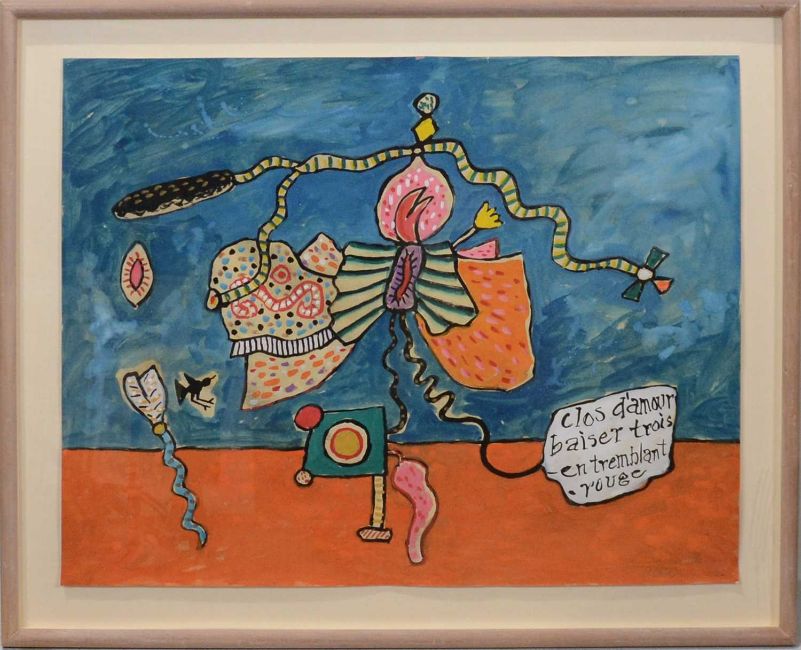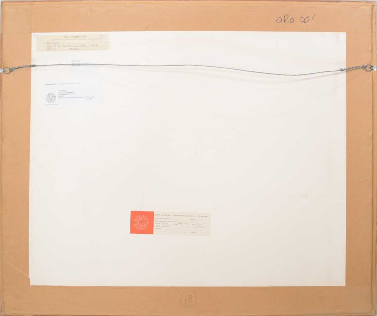 Not inspected out of the frame. Appears in good overall condition, presumably mounted and presented as by Gimpel Fils prior to exhibition. Some minor wear to the margins of the sheet, but no significant tears or evident repairs. The paper is undulating slightly.