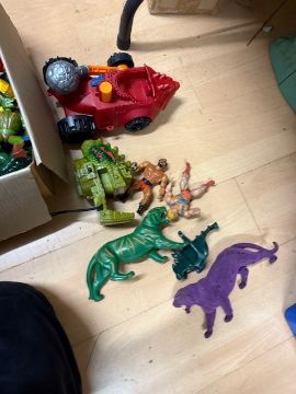 Collection of Mattel Masters of the Universe /He-Man loose action figures, playsets and others, to include Castle Grayskull, Snake Mountain, Bashasaurus vehicle, Battlecat, Purple Panthor, and others.