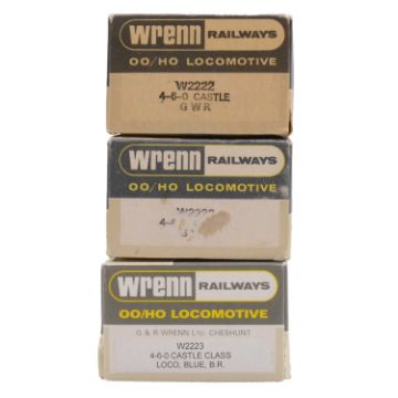 Three Wrenn OO/HO gauge model railway locomotives, Castle Class, including W2222 Devizes Castle, W2223 Windsor Castle, W222* Clune Castle, all boxed.