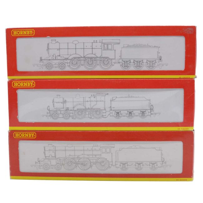 Three Hornby OO gauge model railway locomotives, including R2209 BR Class B17/4 61652 Darlington, R2217 S&DJR Class 2P 44, R2320 BR Class B12/3 61520, all boxed.